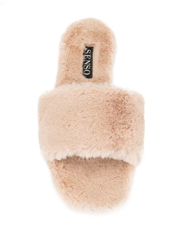 Champagne faux fur Idella slippers from Senso featuring an open toe.