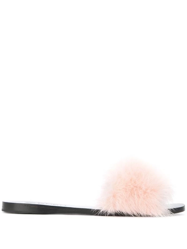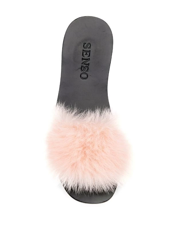 Blush calf leather and sheepskin Bronte mules from Senso featuring an open toe, a flat sole and a fluffy shearling upper .
