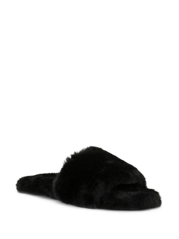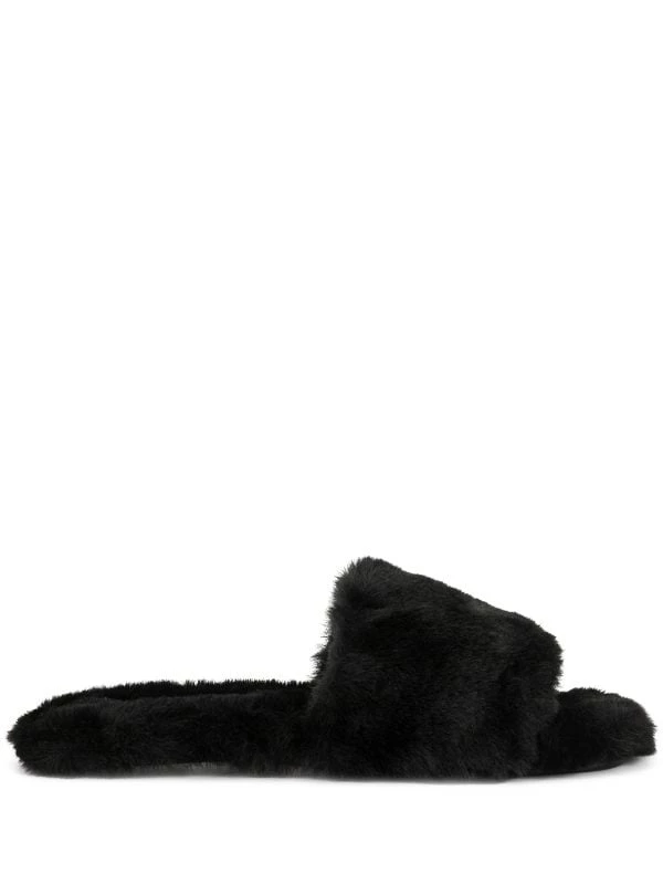 Black faux fur Idella slide sandals from Senso featuring an open toe and a cushioned interior.