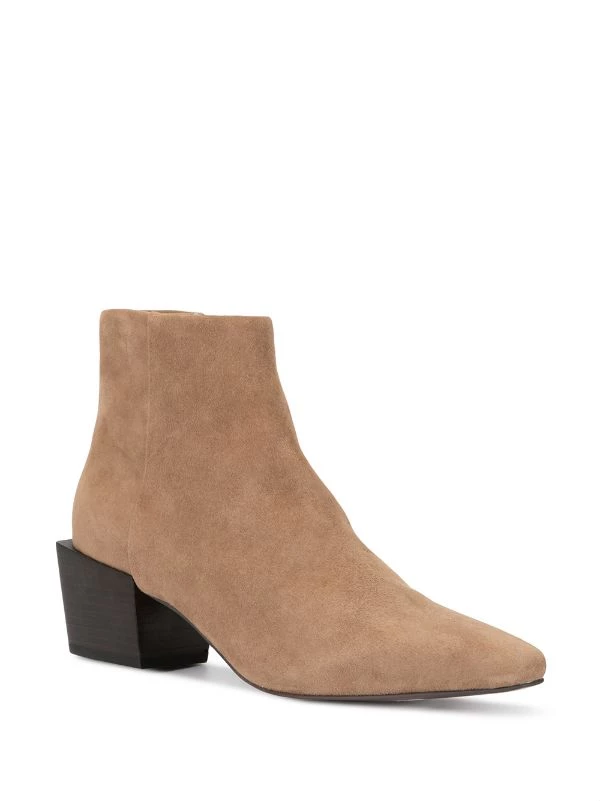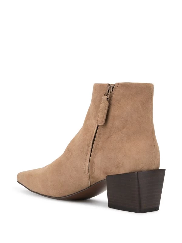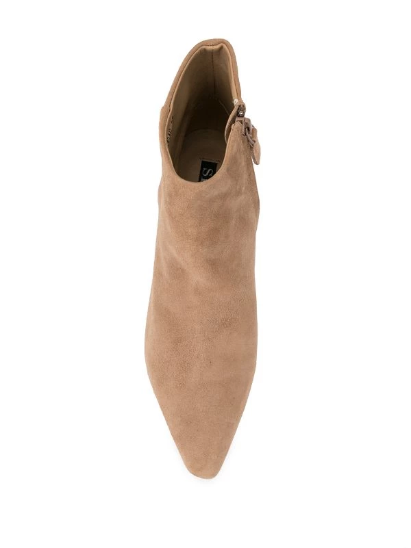 Brown leather Katie II boots from Senso featuring a pointed toe, a leather insole, a mid high block heel and an ankle length.
