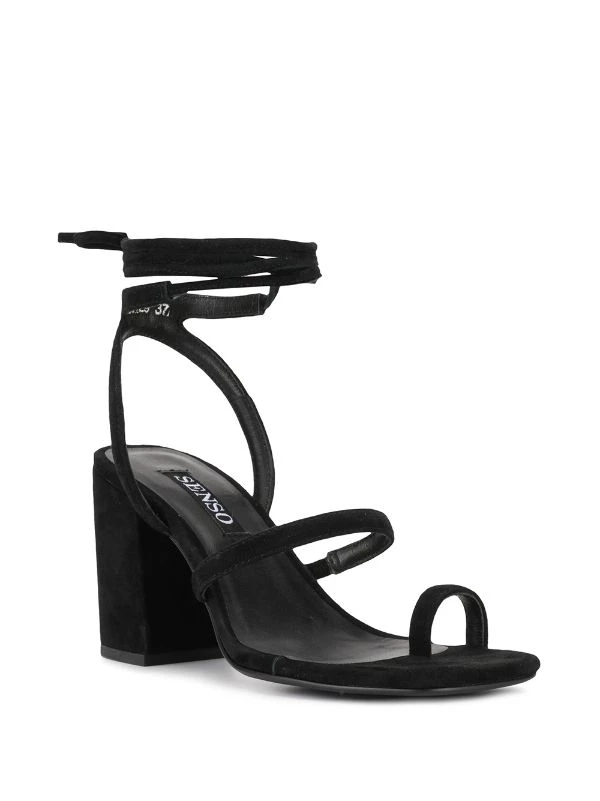 Black kid leather and suede Orelie sandals from Senso featuring an open toe, a tie fastening, a branded insole and a high block heel.
