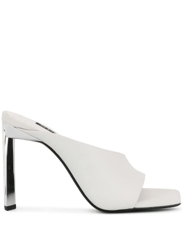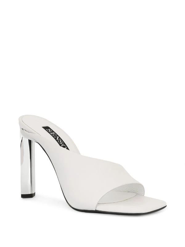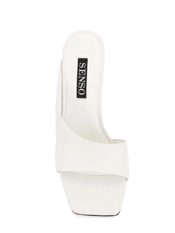 White leather Wilhemina I mules from Senso featuring an open toe, an asymmetric style and a slim block high heel.